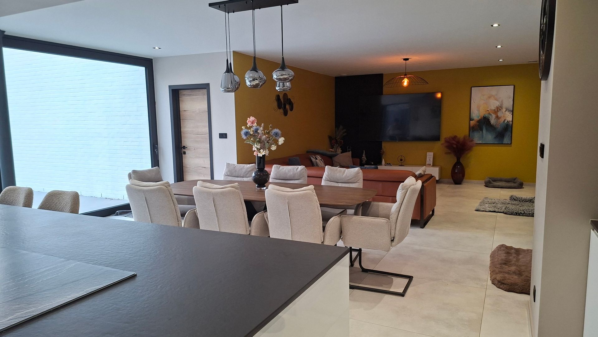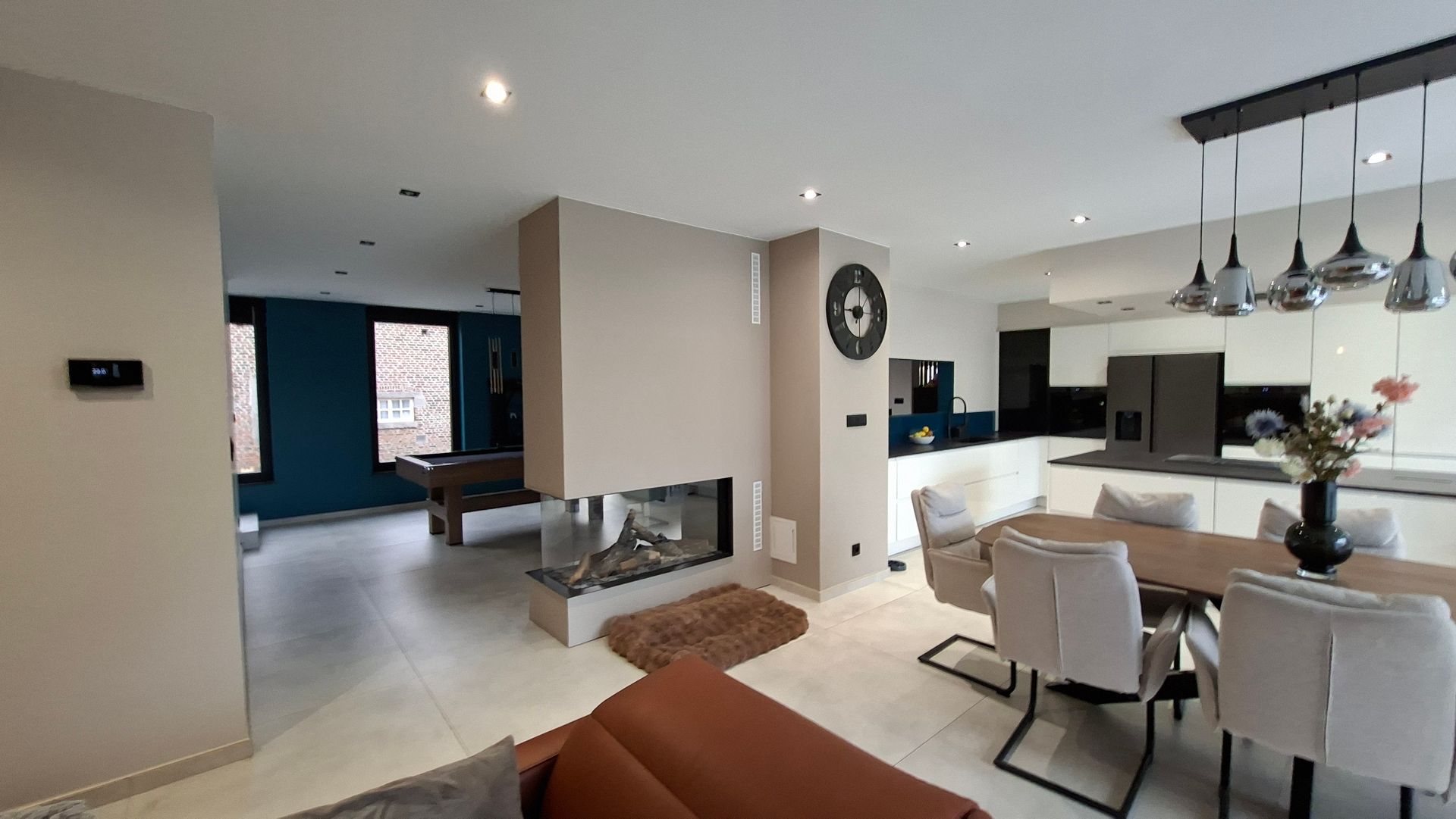 À l’arrière, la façade a été entièrement démontée puis reconstruite, dans le but d’unifier les différents éléments transformés et de redonner une cohérence d’ensemble au volume bâti. Une petite extension vient compléter cette intervention en abritant une suite parentale largement ouverte sur le jardin. Cette pièce bénéficie d’une vue privilégiée sur les espaces extérieurs paysagers, propices au calme et à la détente.